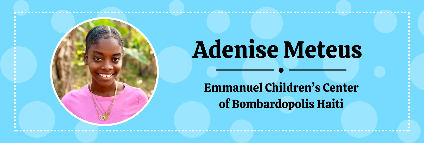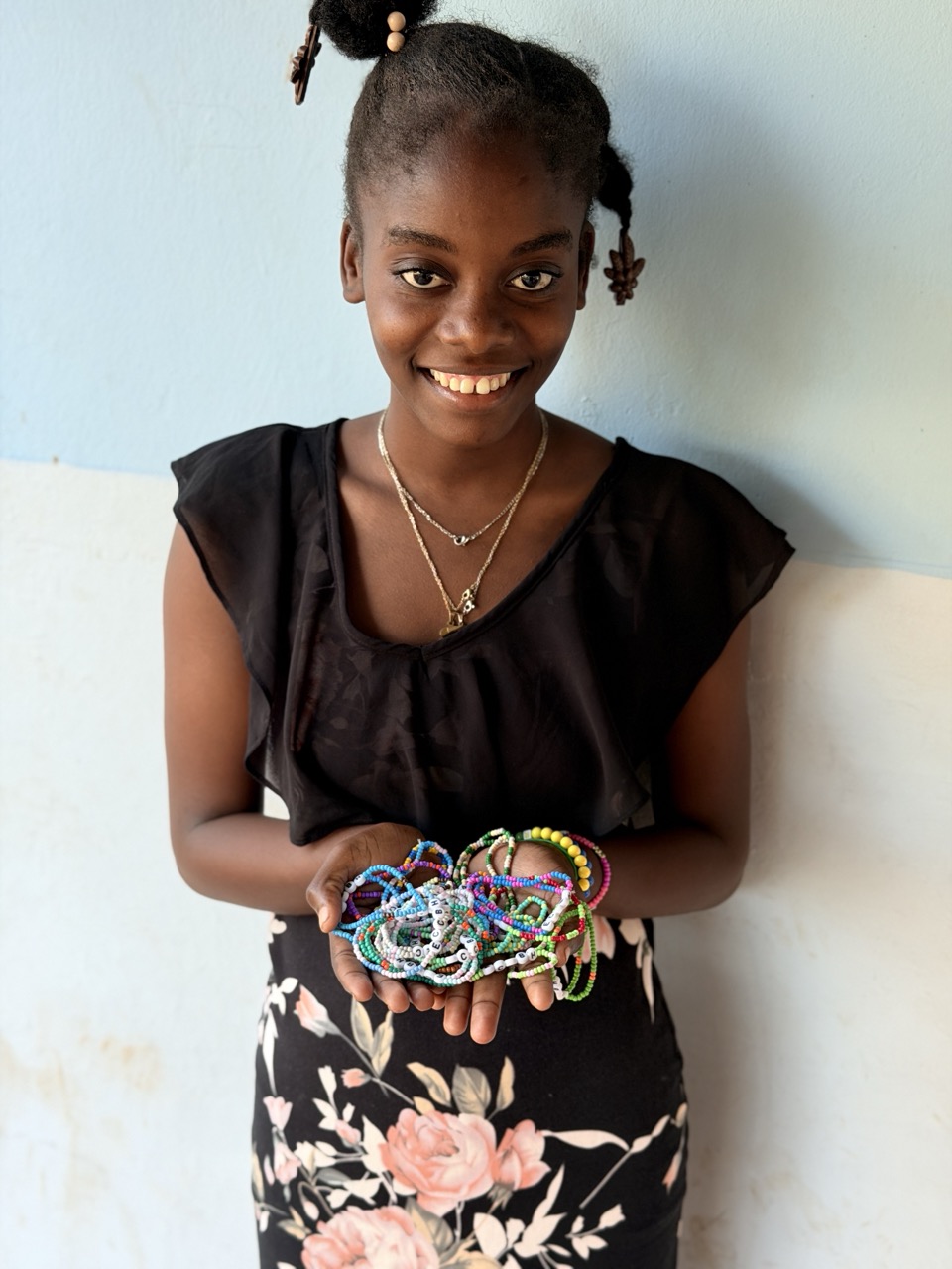 Adenise also has a beautiful singing voice that captivates everyone around her. She loves participating in school competitions and has won several prizes, showcasing her talent and dedication. Beyond singing, she enjoys baking, braiding hair, making jewelry, and dancing, expressing her creativity in so many delightful ways. She has formed close bonds with the older girls at the orphanage, sharing clothes and accessories and enjoying their time together. This friendship not only enriches her life but also helps her blossom into a confident young woman. She truly has a heart of gold—gentle, caring, and always attentive to the feelings of those around her. Her compassion shines through in the way she looks out for others, even at such a young age. The love and encouragement she receives from her sponsors is a big light in her life, reminding her that she is valued and supported. Their presence not only lifts her spirits but also helps her grow into the kind, confident young girl she is becoming.
