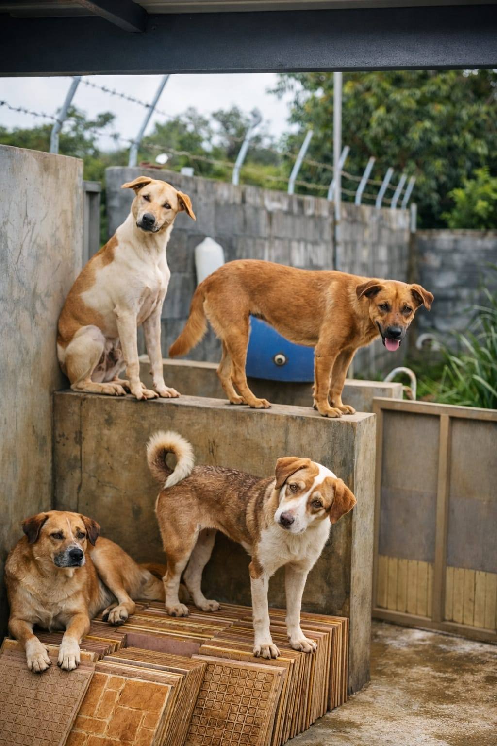Ici, les chiens ne vivront pas enfermés dans des cages. Ils ne passeront pas leurs journées derrière des grilles. En journée, ils évolueront librement dans des espaces sécurisés, pensé pour leur équilibre : zones ombragées, espaces de repos, socialisation et détente. La nuit, ils seront réunis dans plusieurs grandes pièces communes, sans cage individuelle, sans barreaux - un espace collectif respectant leur nature sociale.