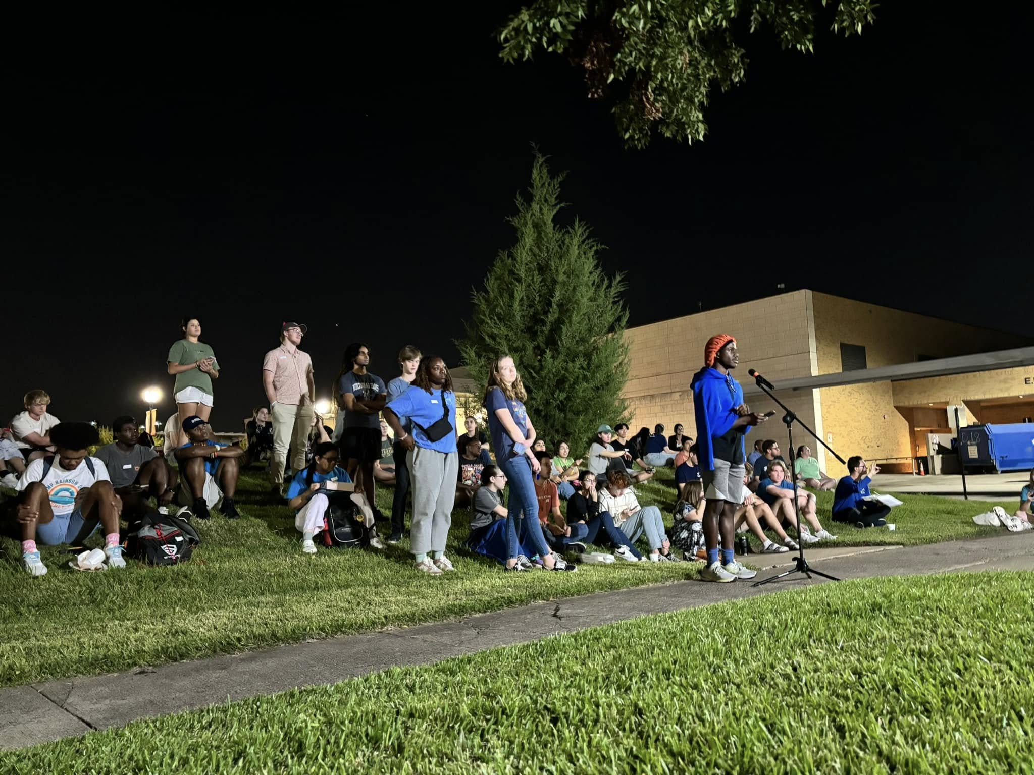 Students lining up at the University of Texas in Arlington to ask questions.