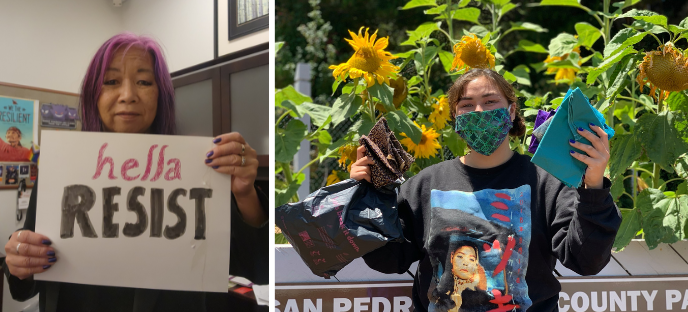 As hate crimes against Asian Americans spiked as a result of President Trump’s rhetoric blaming all Chinese for the so-called “Wuhan virus,” the mostly-Asian American Auntie squad formed, gathered momentum, and sewed masks by the thousands. As coronavirus rapidly spread through every state, overburdening health care systems to near-collapse, more and more Aunties joined the ranks. When it became clear that communities of color were disproportionately impacted by COVID-19, the Aunties quickly pivoted from their initial mission of supplying healthcare workers to meeting the needs of vulnerable communities, funneling masks to farmworkers, day laborers, unhoused asylum seekers, indigenous communities, incarcerated people, and many others in need of protection. As the nation erupted in rebellion over police violence against Black Americans, the Aunties supplied Black Lives Matter protesters with facemasks. For the Aunties, sewing masks is not only a way to meet a public health need, but also a means to express cross-racial solidarity in a moment of social upheaval.