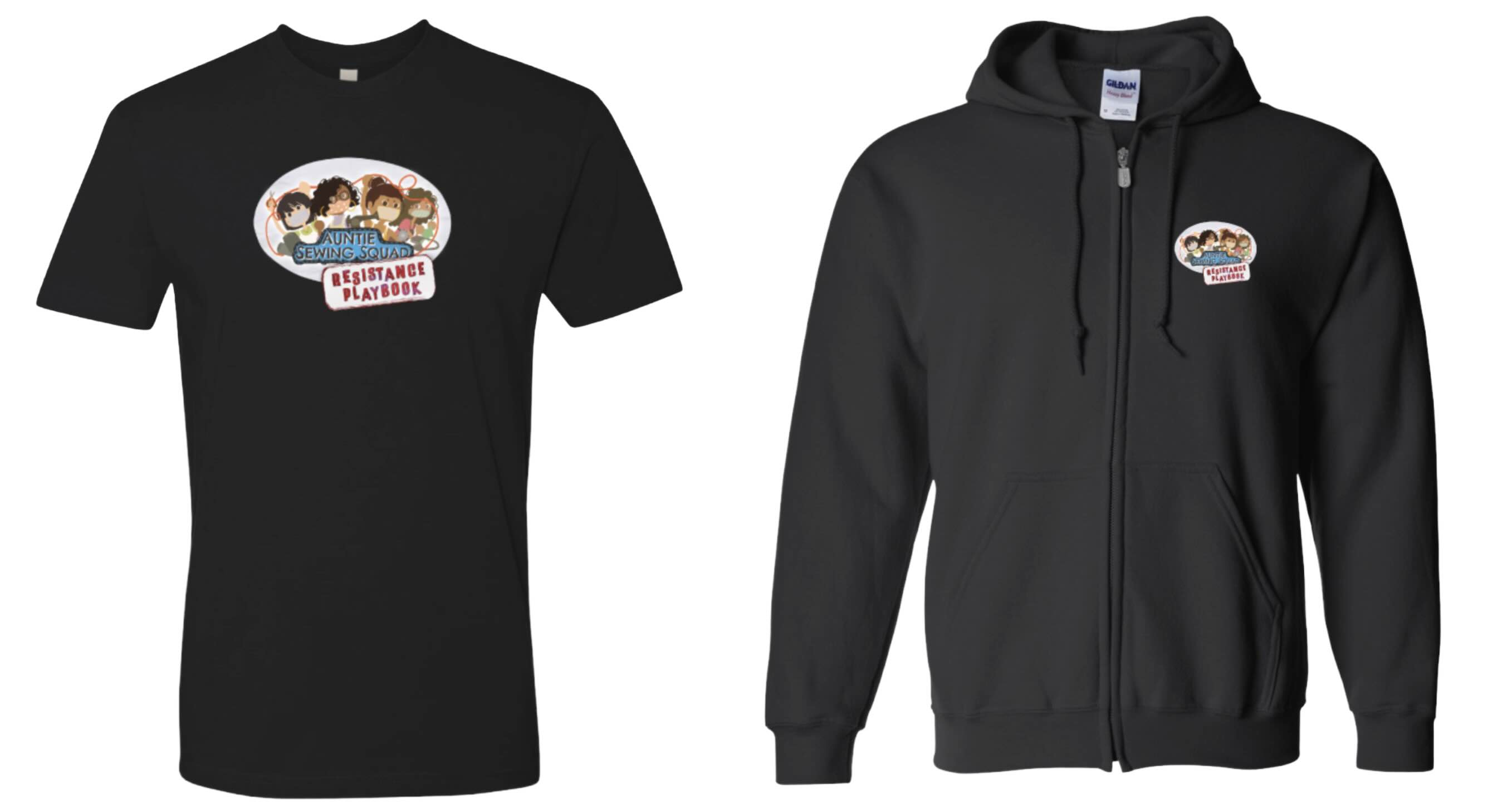 $250 donation: THE AUNTIE SEWING SQUAD RESISTANCE PLAYBOOK complete package: tshirt, zip hoodie, sticker, digital download, name in film credits