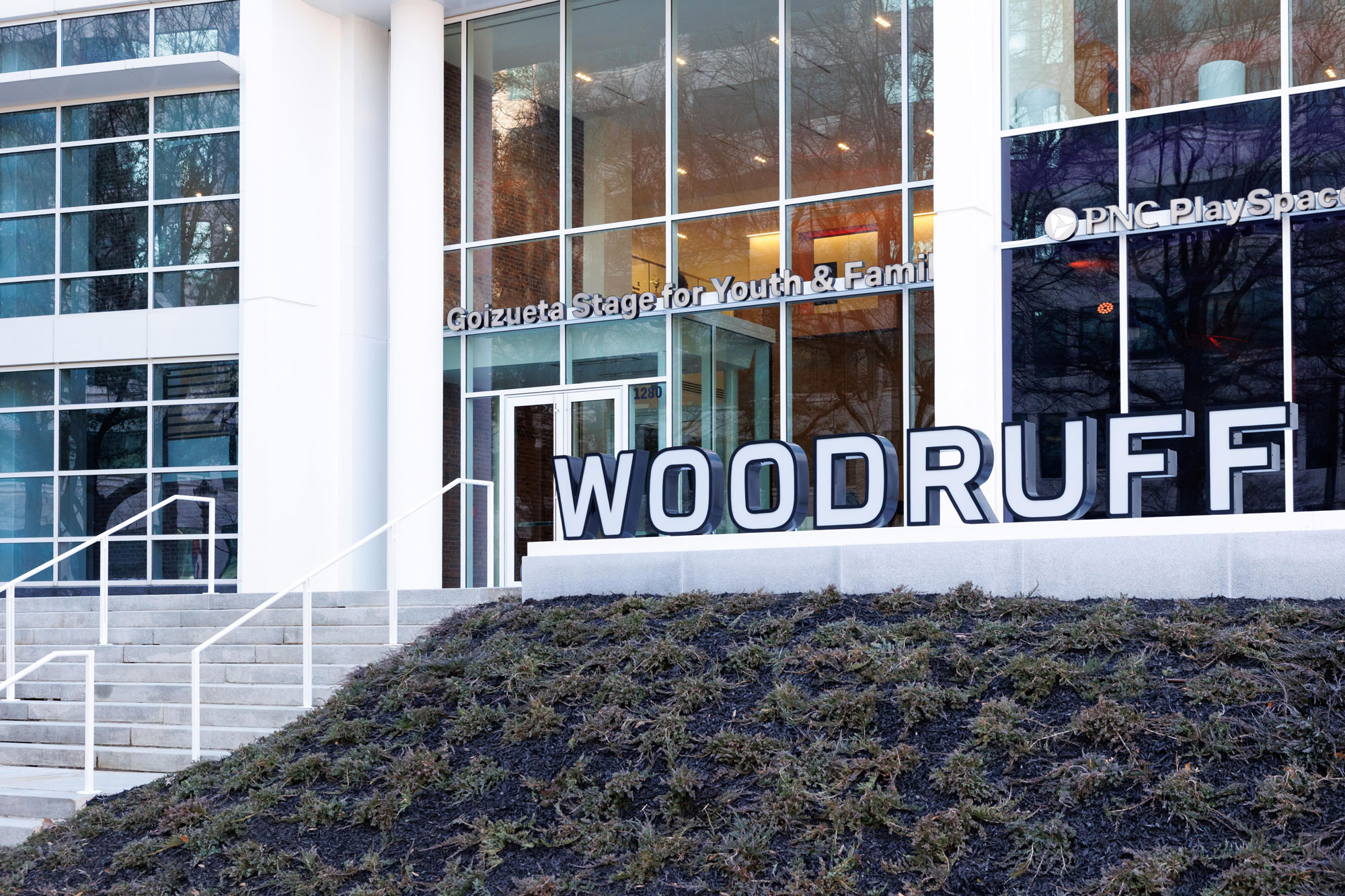 Text will be in all caps. Logos and images are not permitted. The Woodruff Arts Center team will review all text. If changes are required, a staff member of the Arts Center will contact you.