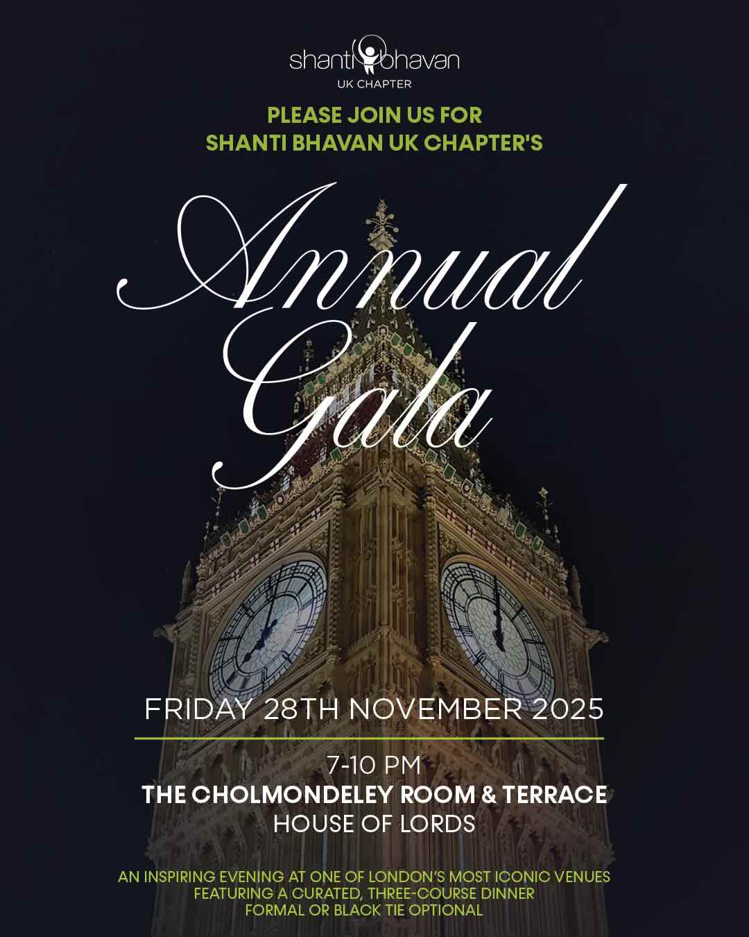 Join supporters, volunteers and donors of the Shanti Bhavan UK Chapter at our Annual Gala on Friday, 28th November 2025, in the beautiful setting of the House of Lords in London. This year's gala will be unlike any before—a formal-attire event, with a curated three-course dinner.