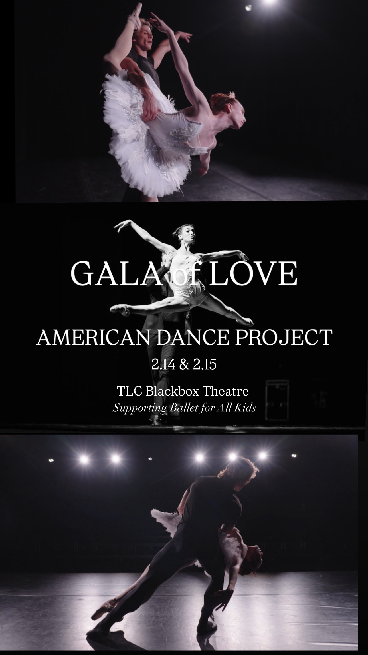 Only 150 seats! Six acclaimed ballet dancers perform your favorite romantic pas de deux from the world’s most beloved ballets in an intimate black box setting. From Swan Lake to Giselle witness this beautiful performance for a cause. Your ticket supports Ballet for All Kids, helping pay the artists and sustain inclusive dance programs for children of all abilities.