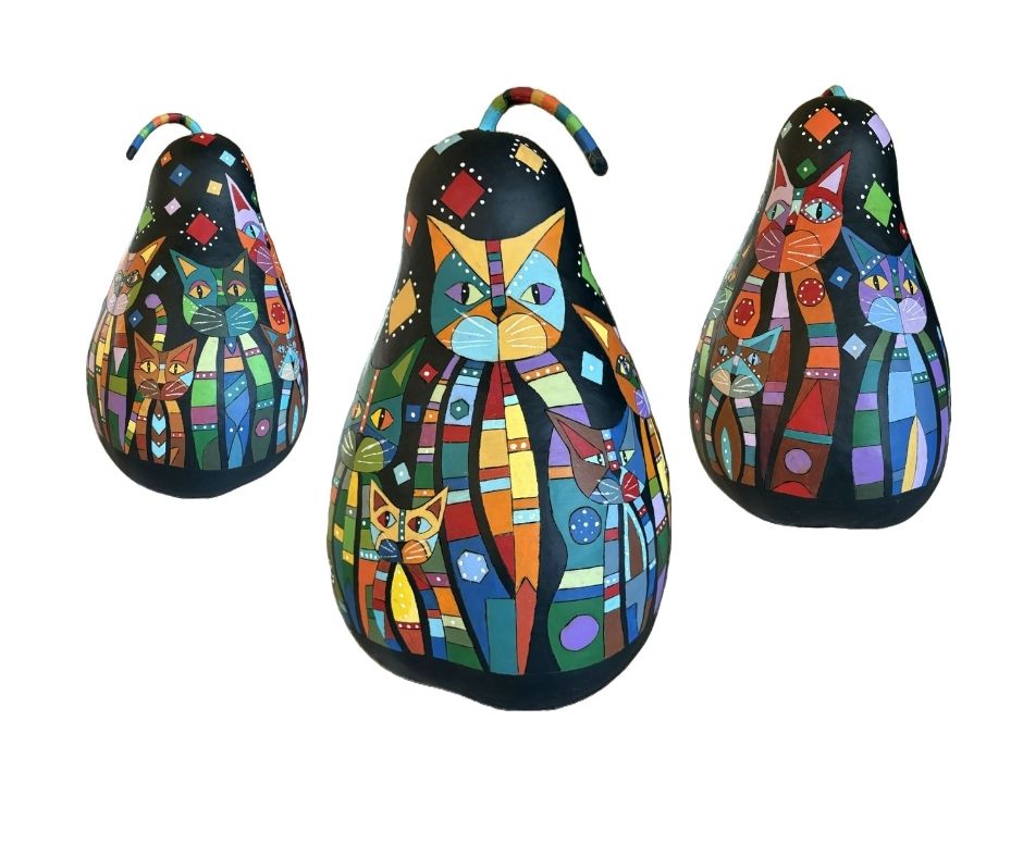Whimsical Cats Gourd Drawing
