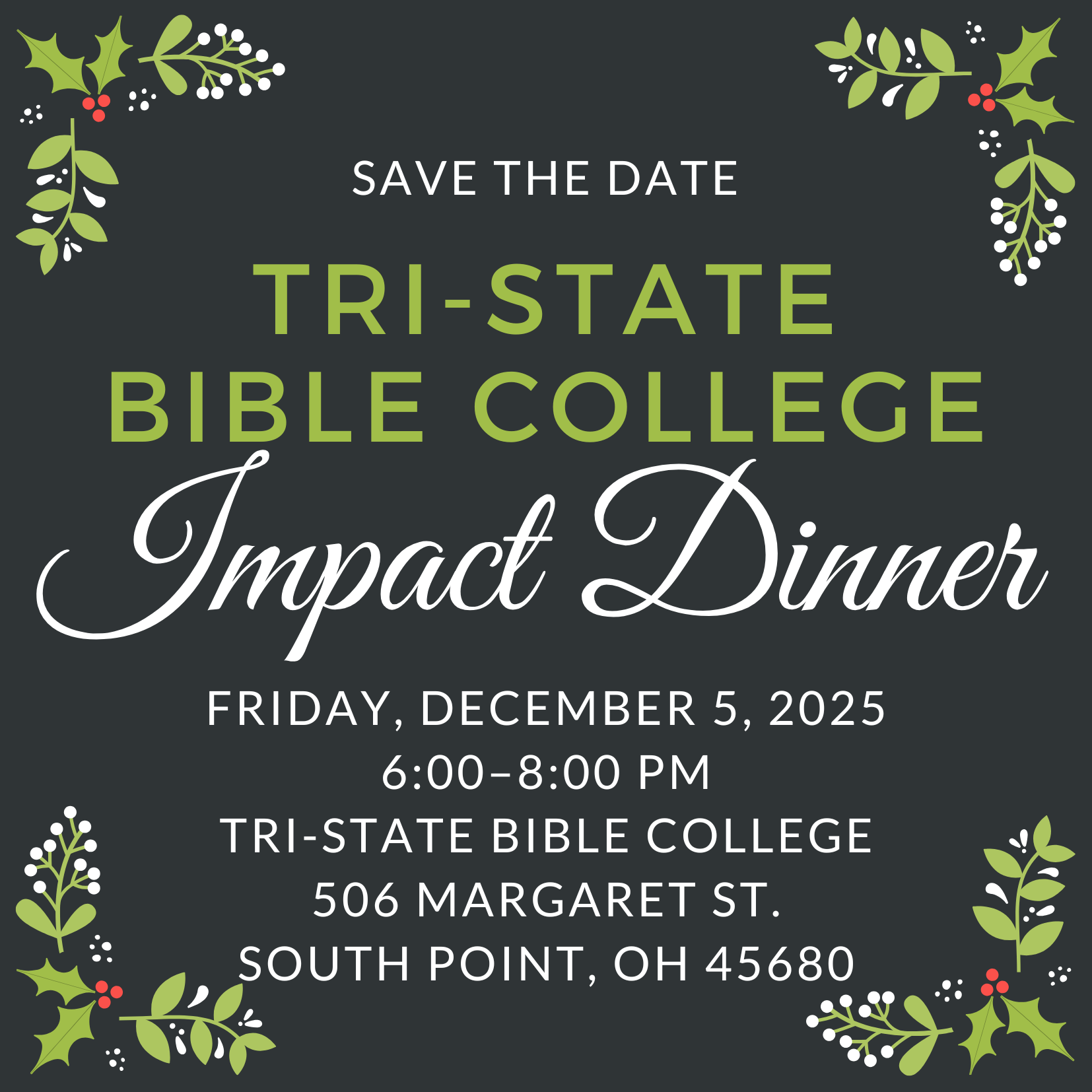 - Tri-State Bible College hosted a tailgate party at the September 6, 2025 Marshall University vs. Missouri State matchup.