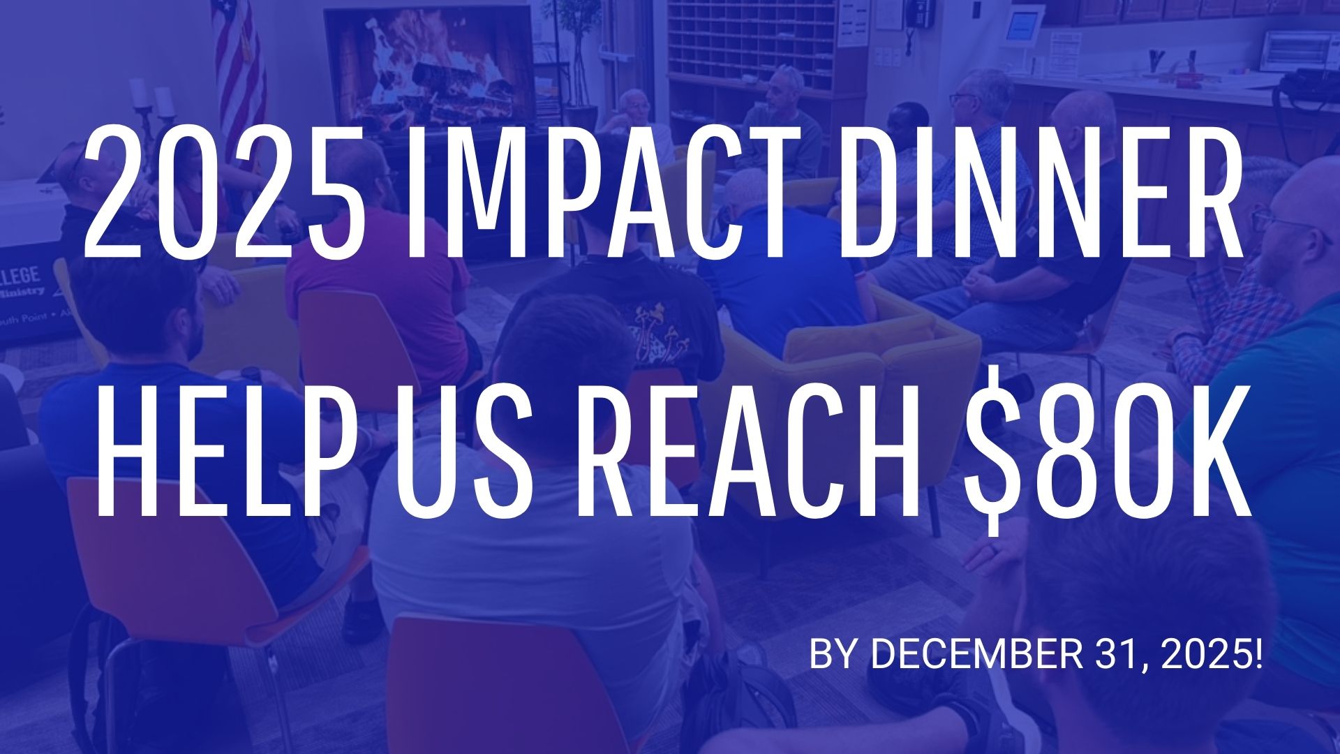 Our goal for giving in December 2025 was set for $80k. We praise God for your faithfulness and generosity because you smashed that goal. We received a total of $77,412.38 in the month of December, and we received pledges totaling $18,400 for the new year! Our year end total received + pledged = $95,812.38! THANK YOU!