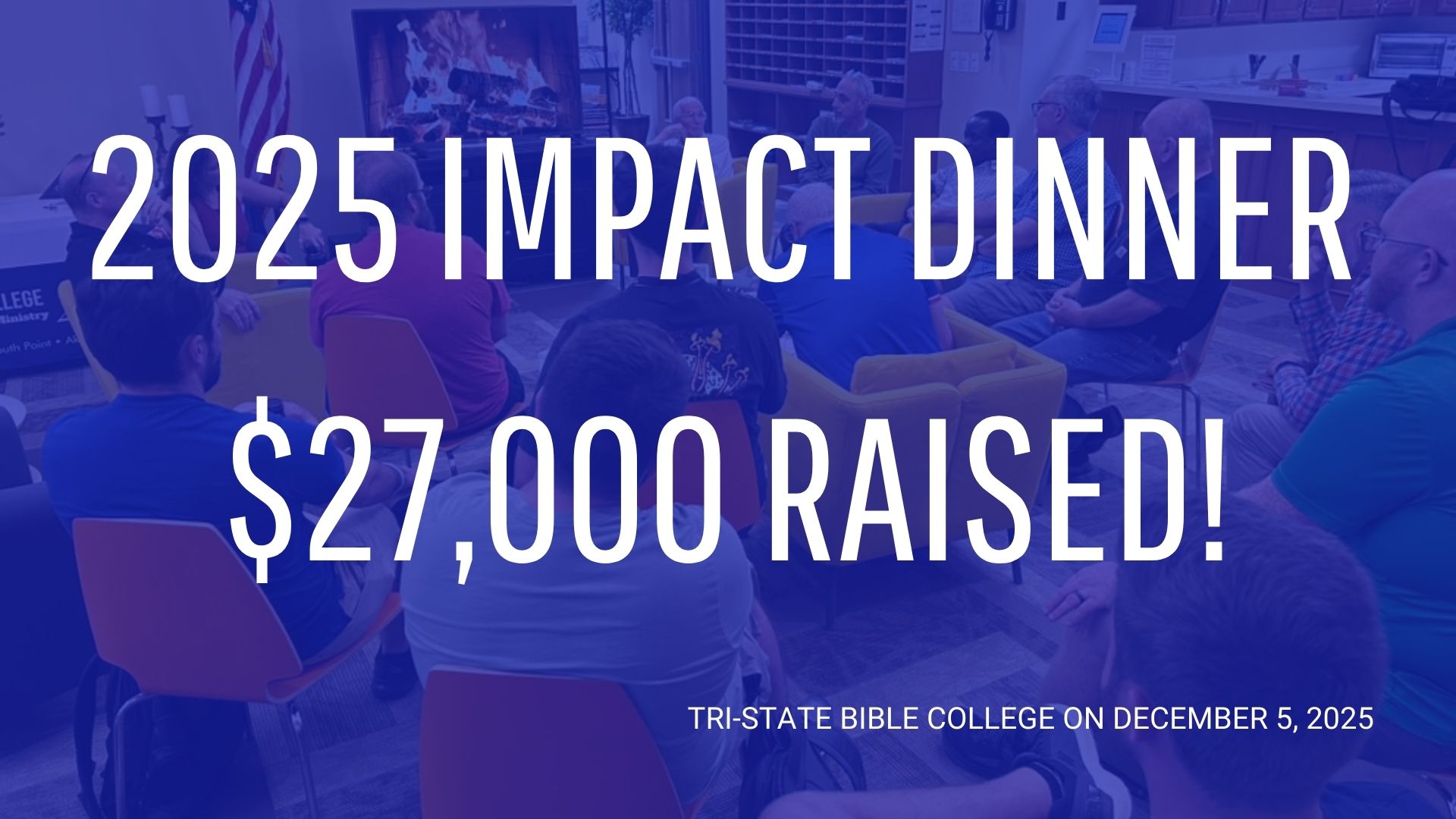 3. PLAN A MAJOR END-OF-YEAR TAX DEDUCTIBLE GIFT TO THE STRATEGIC GOALS OF TSBC. Having entered the second half of the year, many of you are beginning to plan your end-of-year giving. The generosity of your major gifts has been essential to the fulfillment of our vision and mission. As you can imagine, we depend on your generosity at this time to fund key initiatives and to strengthen operations for the second half of our fiscal year (January–June). TSBC depleted much of our undesignated savings for summer operations when giving and enrollment was lean. As you plan, will you consider making a tax-deductible gift to Tri-State Bible College? If you want to invest in a specific project, like Phase 3 of the Library relocation project or technology upgrades for Room #116, I am here to listen and to connect your giving to strategic goals.