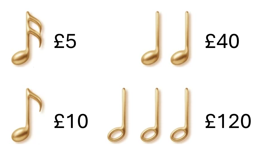 - Semi-quaver: £5 a month – One new set of sheet music for the choir a year