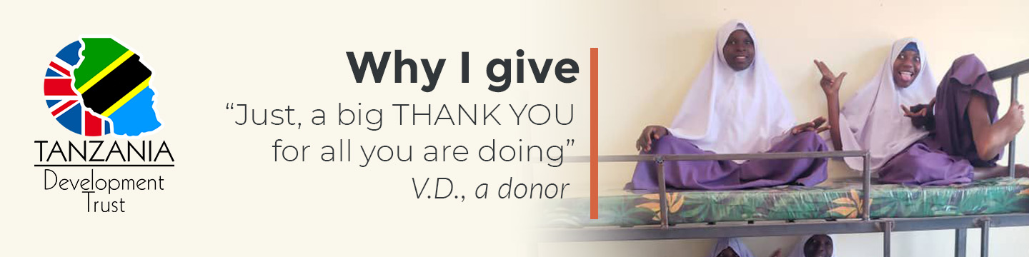 100% of donations to Tanzania Development Trust go directly to projects. All core running costs are covered separately, ensuring your donation is used in full for education work.
