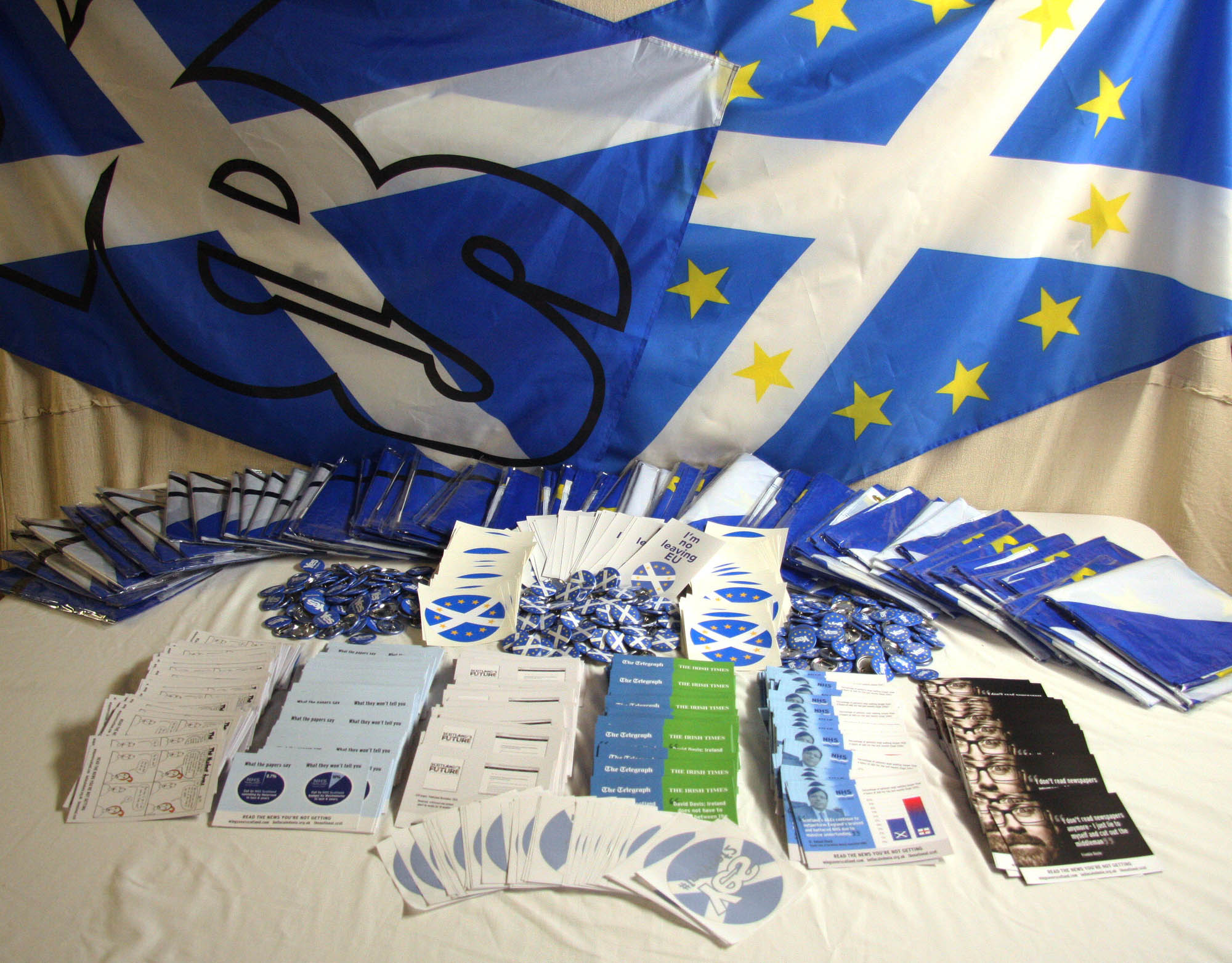 ayeMail is a not-for-profit dedicated to Scottish independence. Established in 2016, we have printed and distributed millions of leaflets, stickers, badges, t-shirts, mugs and tens of thousands of flags to pro-independence groups all over Scotland. We're asking for donations to help us produce another 100 Indy Kits (our sixth Kit to date) packed with campaign materials and merchandise for Yes groups.
