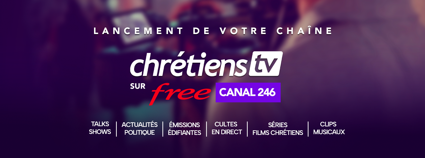 Grâce à votre générosité, la chaîne Chrétiens TV est diffusée sur le canal 246 de Free en France.