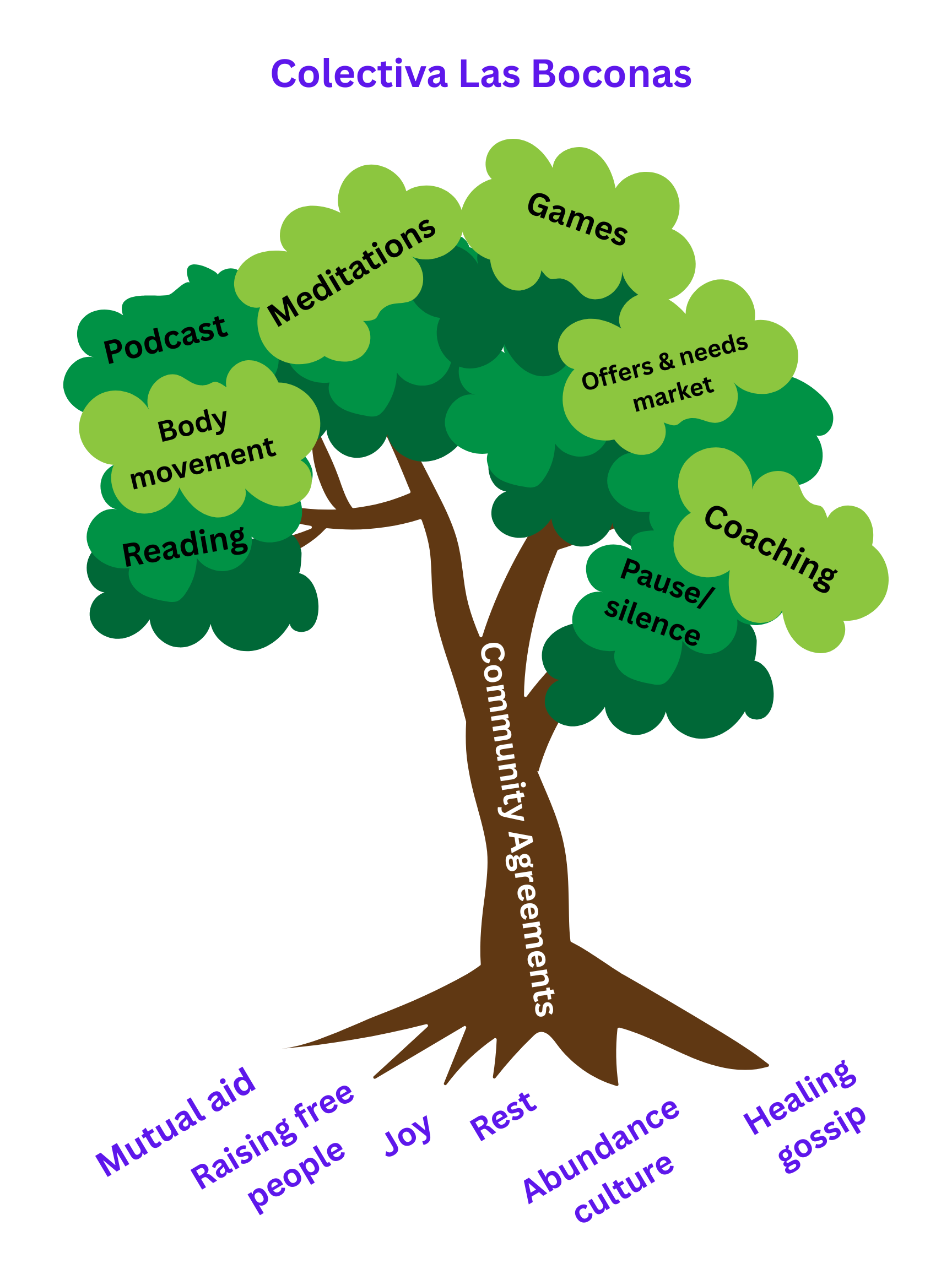 Colectiva Las Boconas somos mujeres/personas de comunidades marginadas cultivando una comunidad intergeneracional de cuidado y liberación en Chicago y sus alrededores a través de la ayuda mutua, crianza de gente libre, chismesito sanador, gozo y descanso.