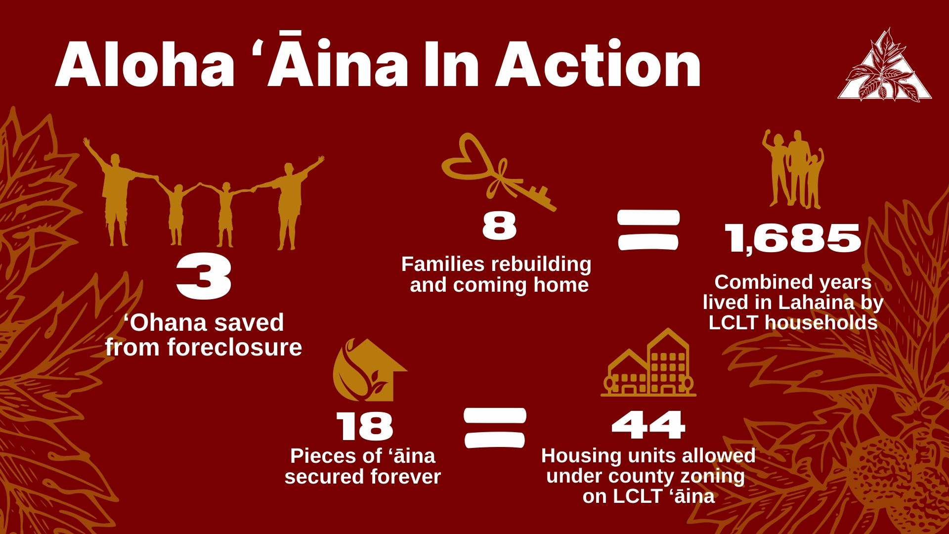 After the 2023 Maui fires, Lahaina families face displacement from soaring land prices, foreclosures, and predatory investors. The Lahaina Community Land Trust protects homes and land for generations by helping 'ohana rebuild, preventing foreclosures, and securing property under permanent community stewardship. With a $5M match, every gift is amplified to double our impact to keep Lahaina lands in Lahaina hands, forever.