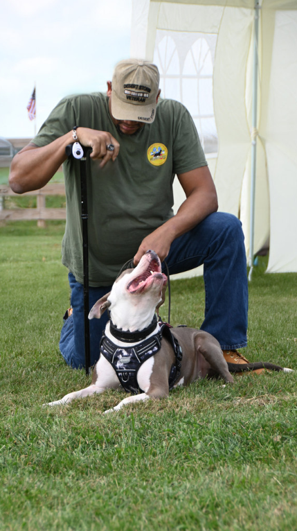 James Berry and Drako — Drako is a rescue who became James’s partner and, at times, his lifeline. With WDFV’s mentorship, Drako learned public access skills and tasks that help James stay grounded and safe.