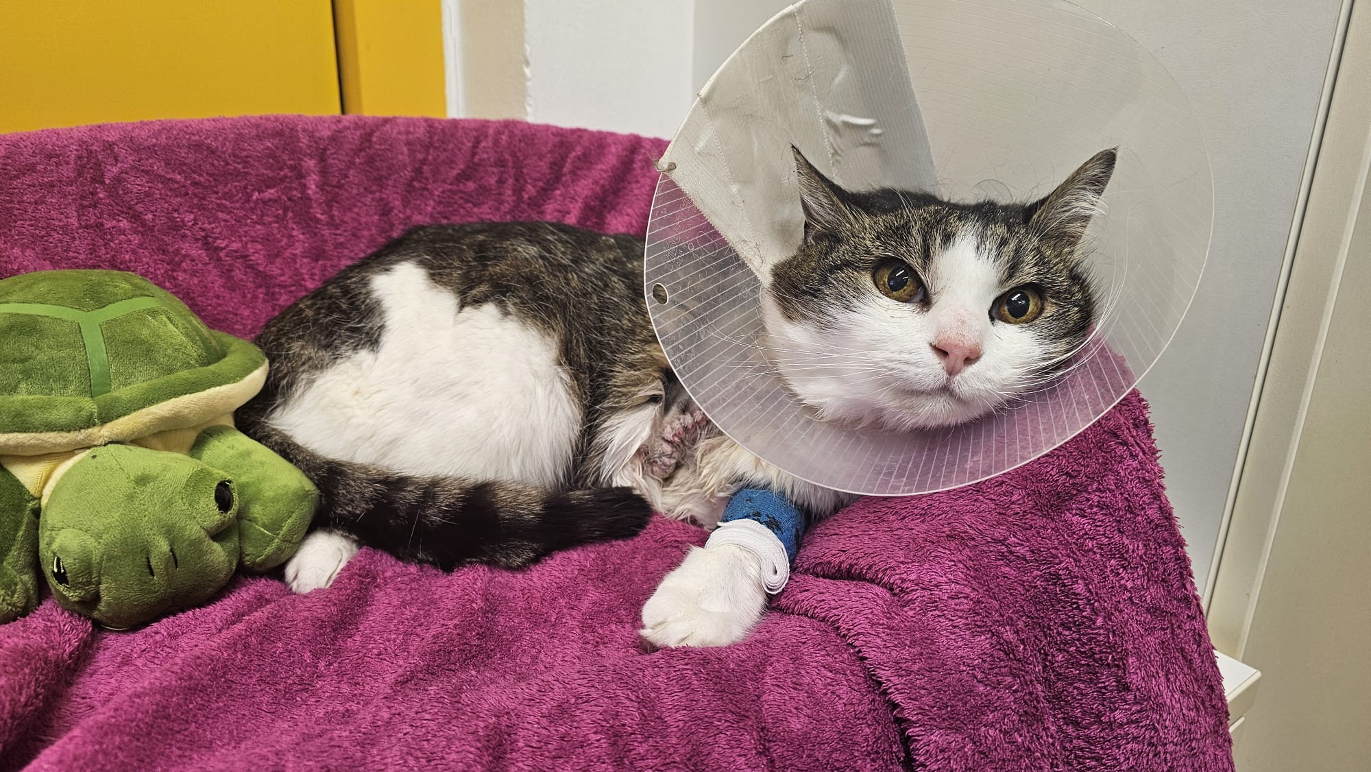 Nach Absprache mit den Tierärzten, wurde Peony aufgepäppelt und für die Operation vorbereitet. Nicht auszudenken wir die letzten Monate für so eine verschmuste und anhängliche Katzendame sein mussten, allein draußen in der Kälte. Schmerzen bei jedem Schritt und dadurch auch noch eingeschränkt zu sein bei der Futtersuche. 😭