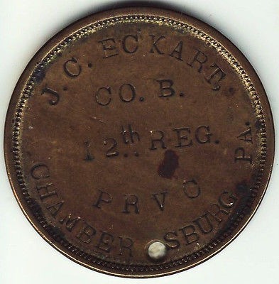Example of a Civil War Era Dog Tag, or “ID Disc” from the time period. The reproductions are authentically reproduced, to match your ancestors name, unit and location of residence, if known.