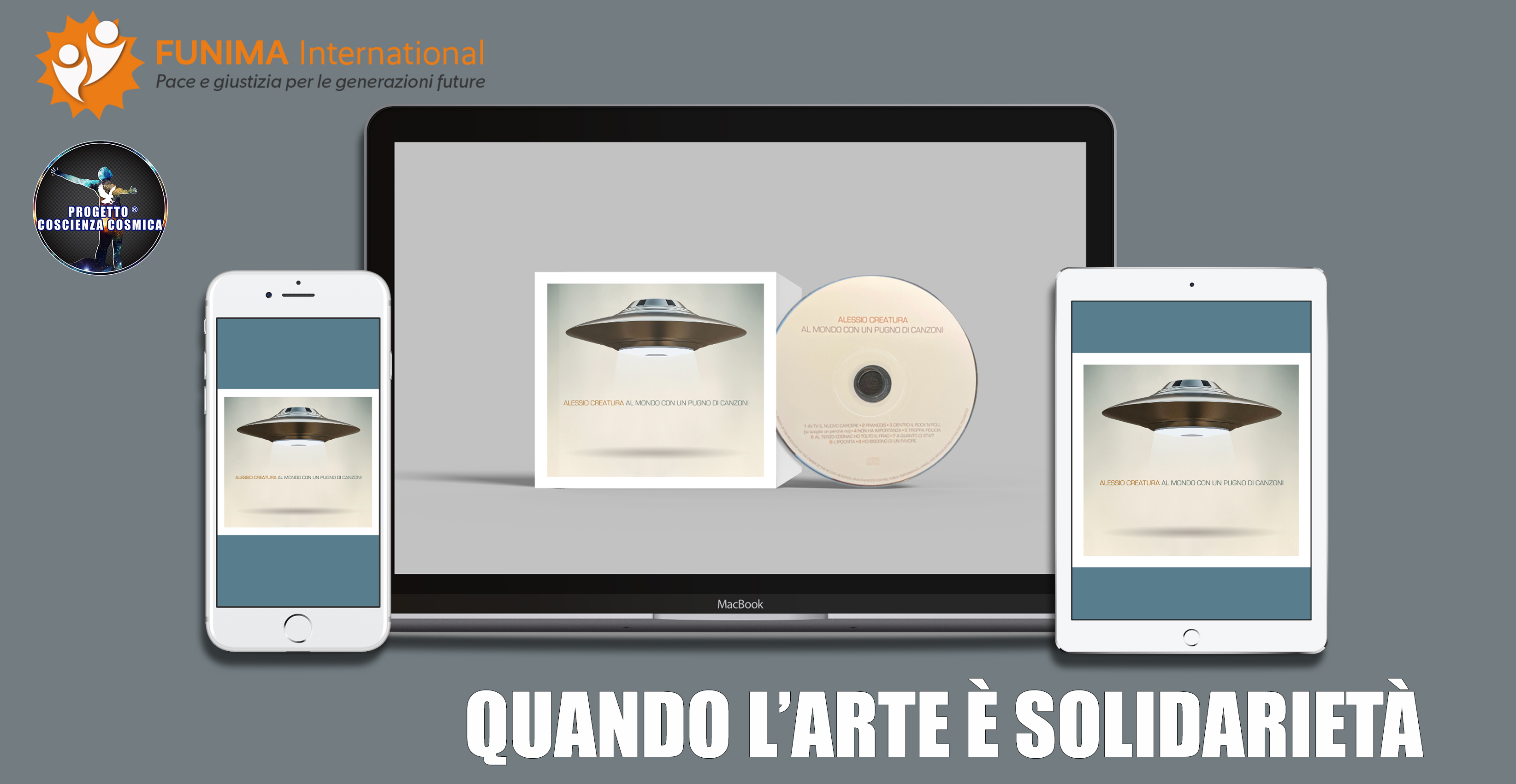 Facendo tuo tale cd musicale, con una donazione libera e consapevole, contribuirai insieme all’Associazione Culturale Progetto Coscienza Cosmica, al sostegno di famiglie e bambini svantaggiati. L’intero ricavato sarà devoluto infatti ai progetti dell’Associazione FUNIMA International.
