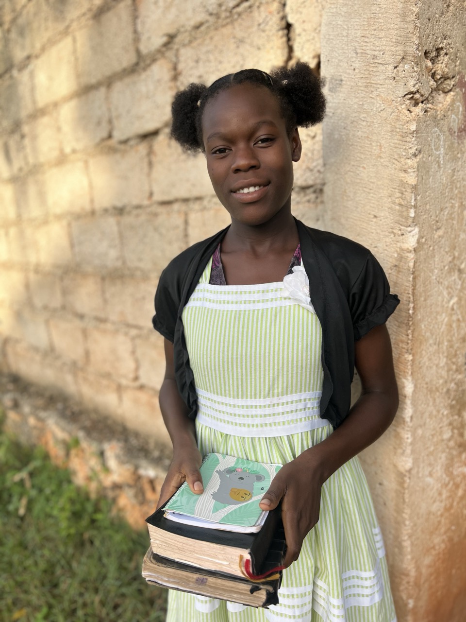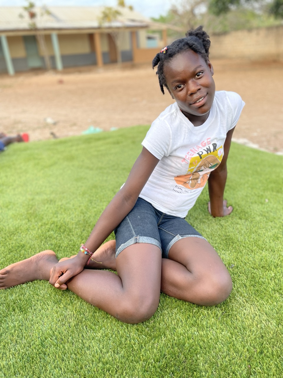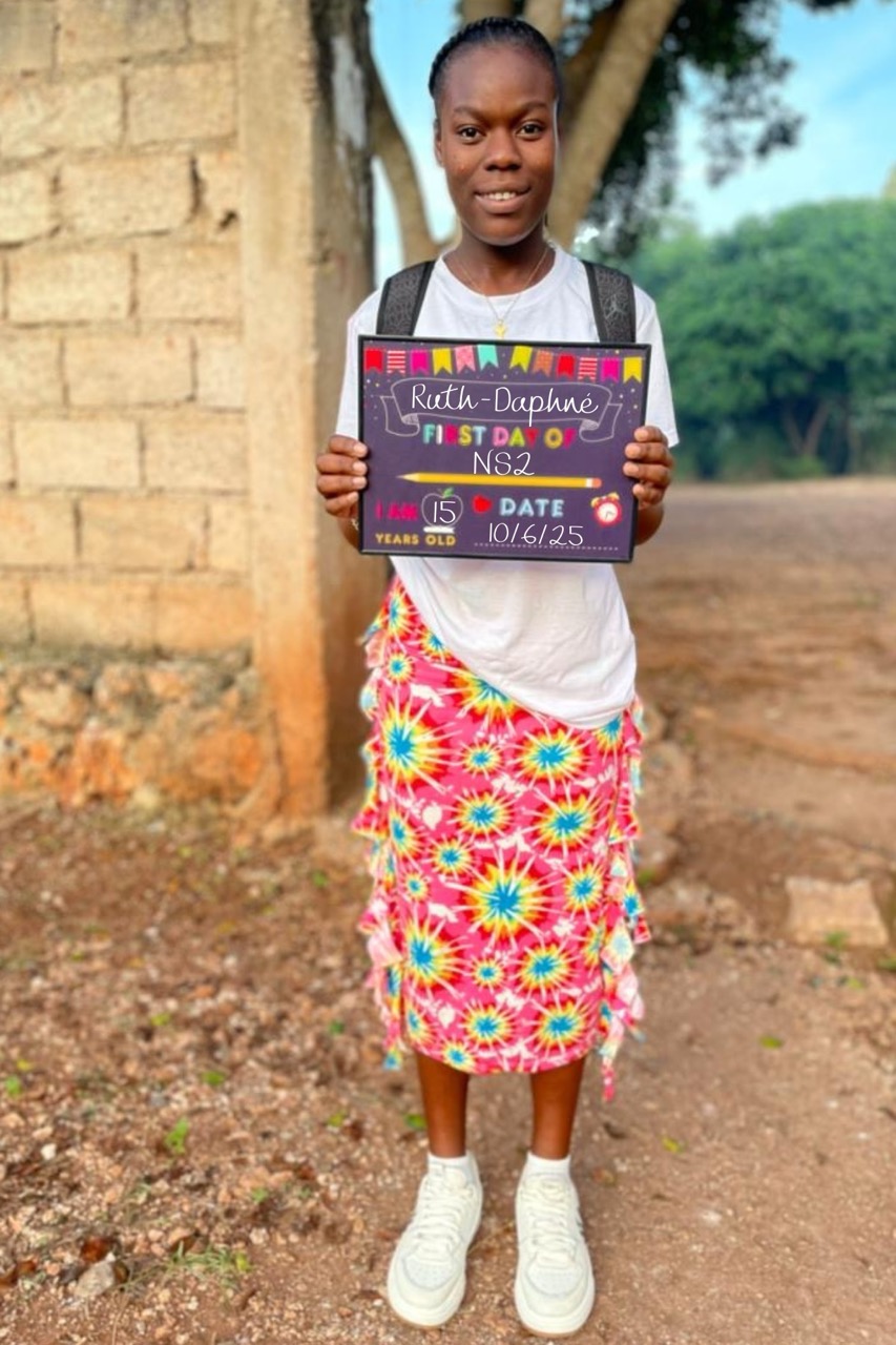 In her free time, Ruth-Daphnè loves to dance and sing, filling the orphanage with her cheerful spirit. She also enjoys writing heartfelt letters to her sponsors and braiding hair, sharing her creativity and kindness with those around her. As a big sister, she takes her role seriously, caring for her younger siblings with a big heart and nurturing spirit.