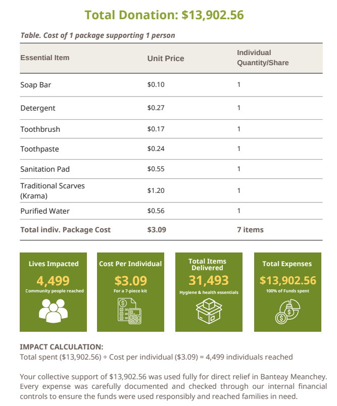 To implement this emergency response in Bantey Meanchey Province, Good Neighbors Cambodia secured large quantities of water and hygiene supplies from reliable suppliers and arranged truck deliveries from Phnom Penh and Battambang to affected areas.
