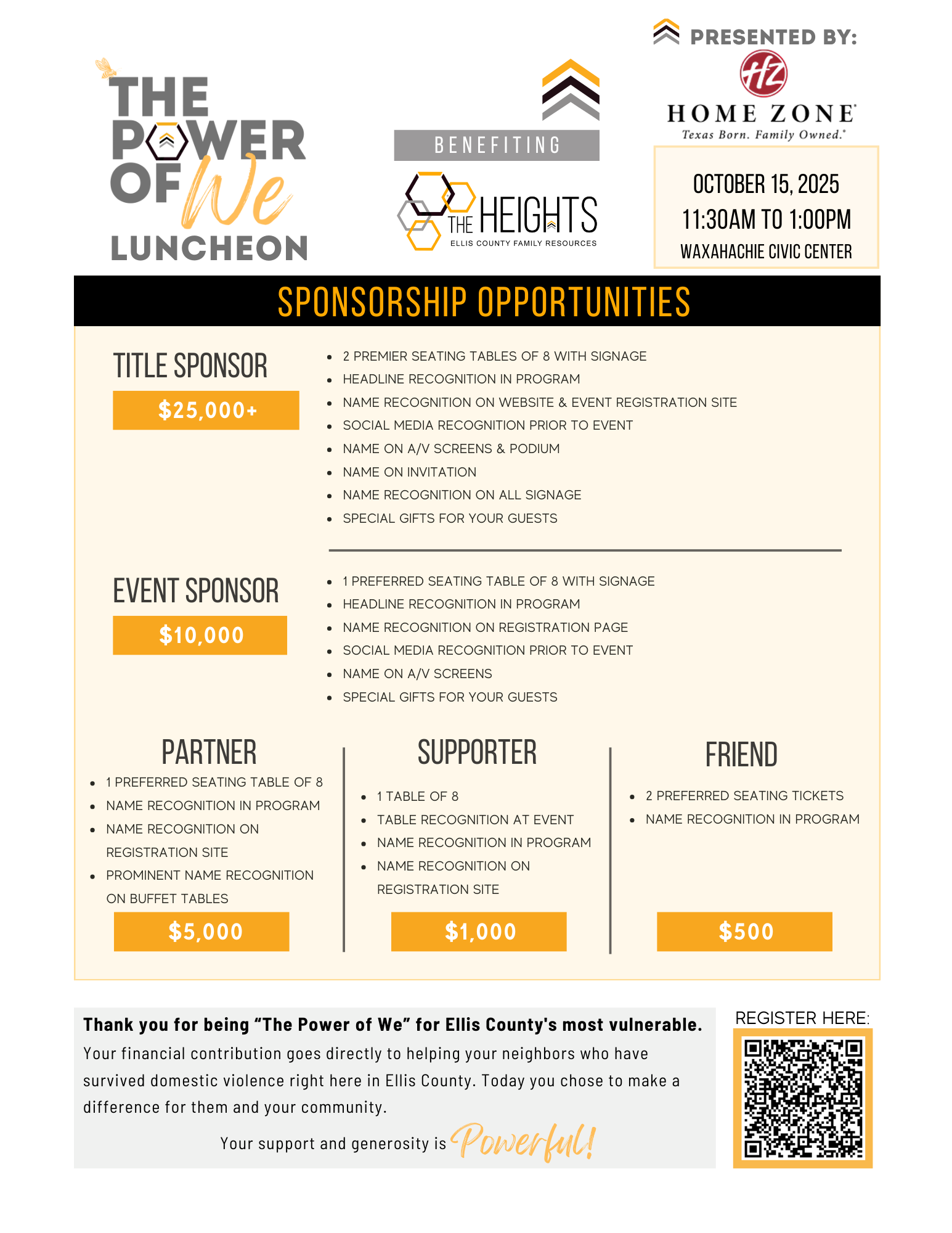 Due to the generous support of our community, the Power of We Luncheon is currently SOLD OUT!