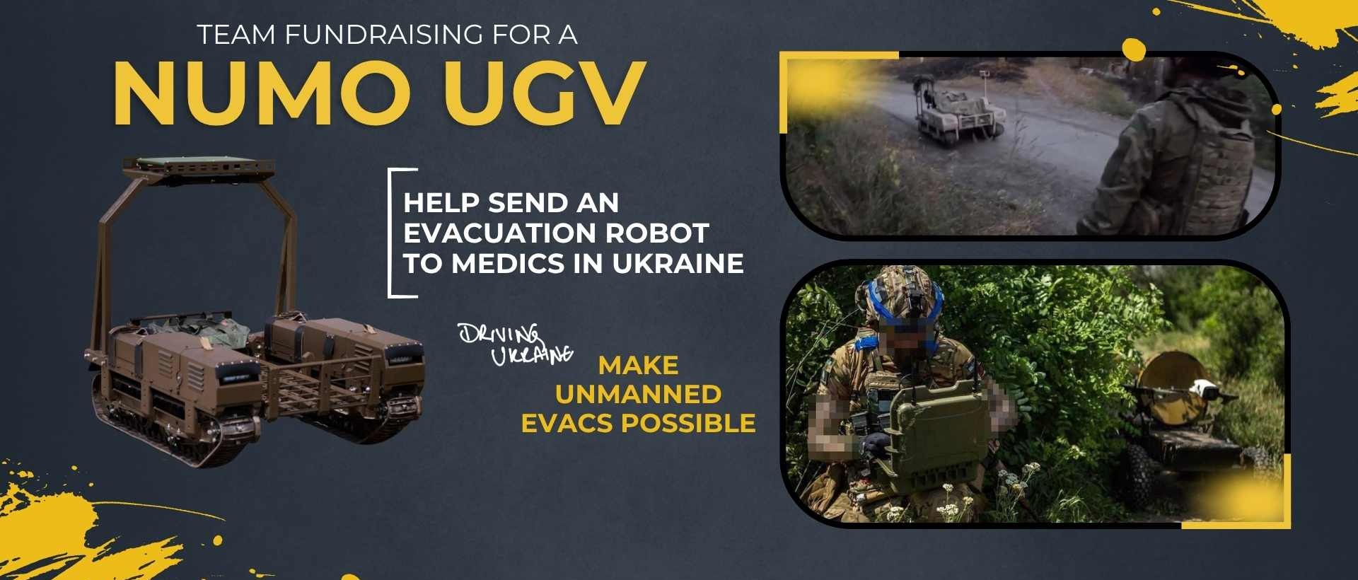 We have confirmed with the International Legion of Defence Intelligence Forces and the UGV manufacturer and are ready to purchase the NUMO UGV as soon as we hit our fundraising target so please give, share and help us supply one of these incredile life-saving machines.