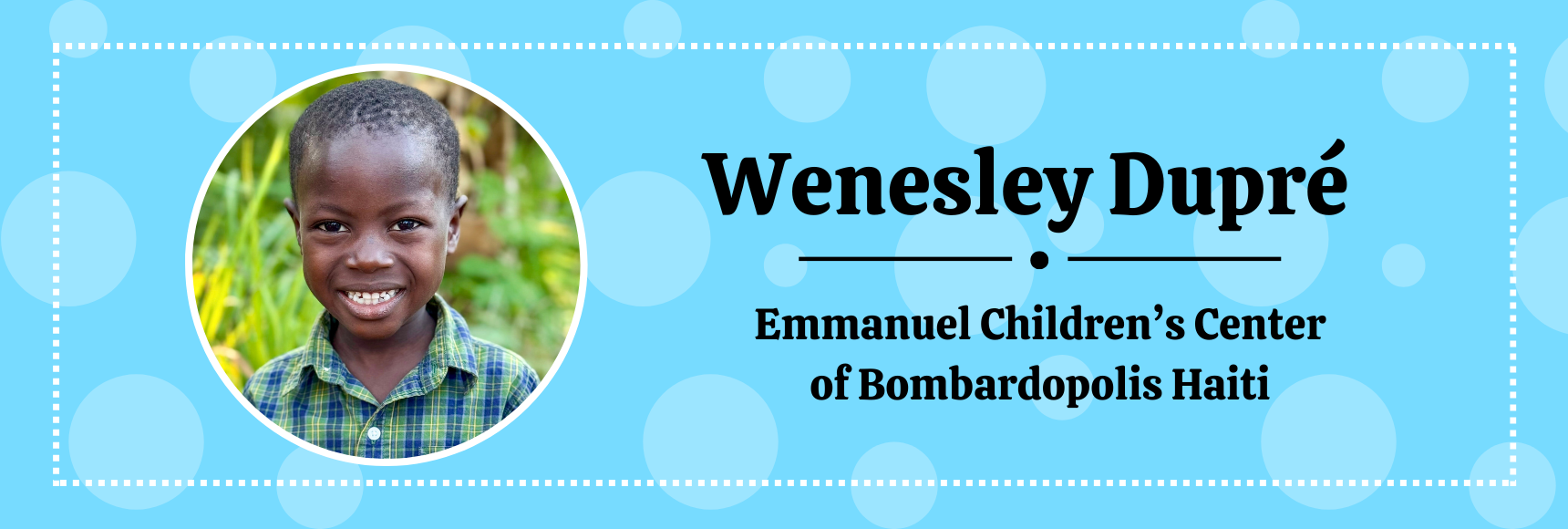 Because of financial challenges while still under his parents’ care, he unfortunately missed the last few months of K3 and was unable to participate in his graduation. He will now be entering 1st grade, though it is clear he will benefit from some one-on-one support to help him catch up and thrive academically. Despite these hurdles, he is a sweet and eager boy who loves to please and brings joy to those who know him.